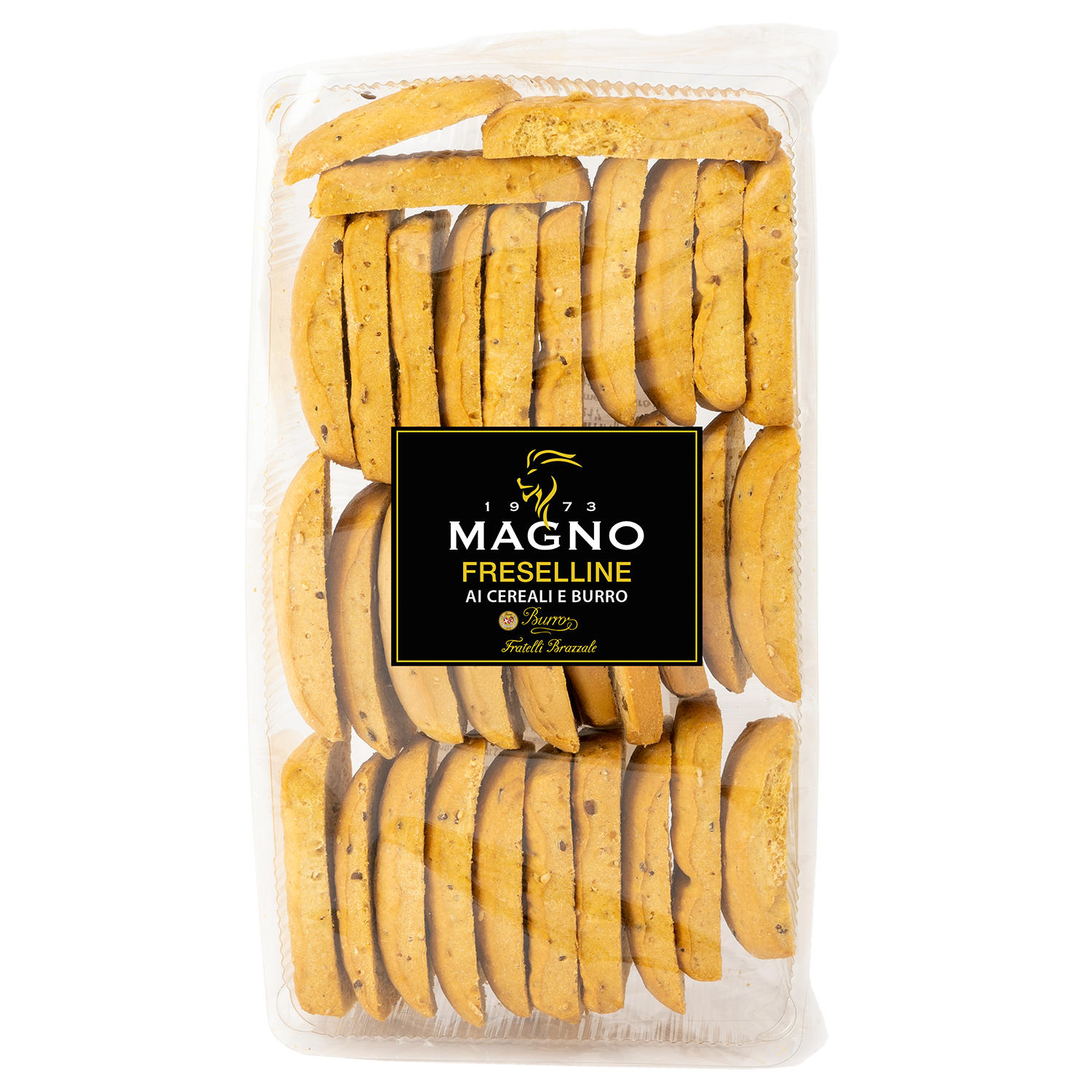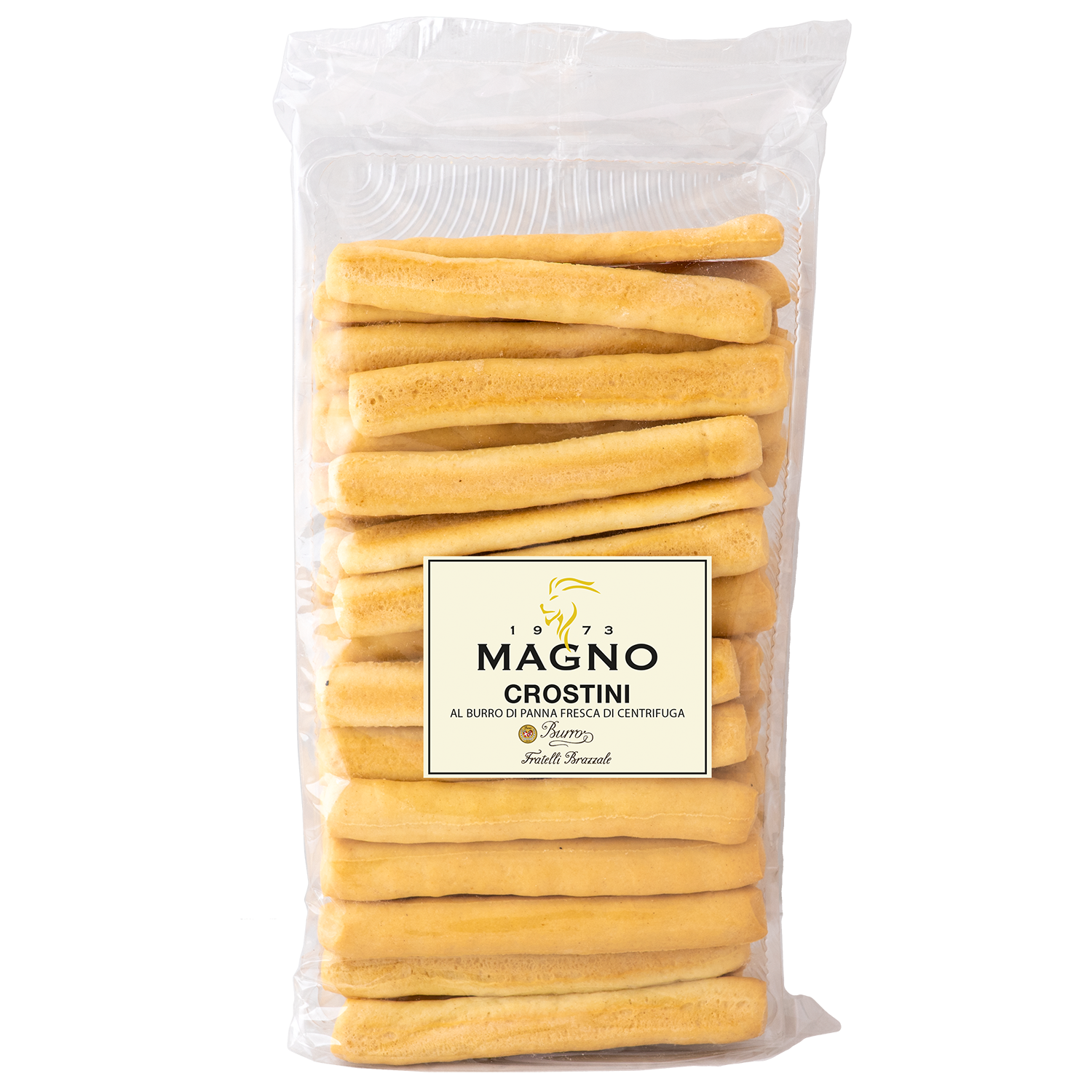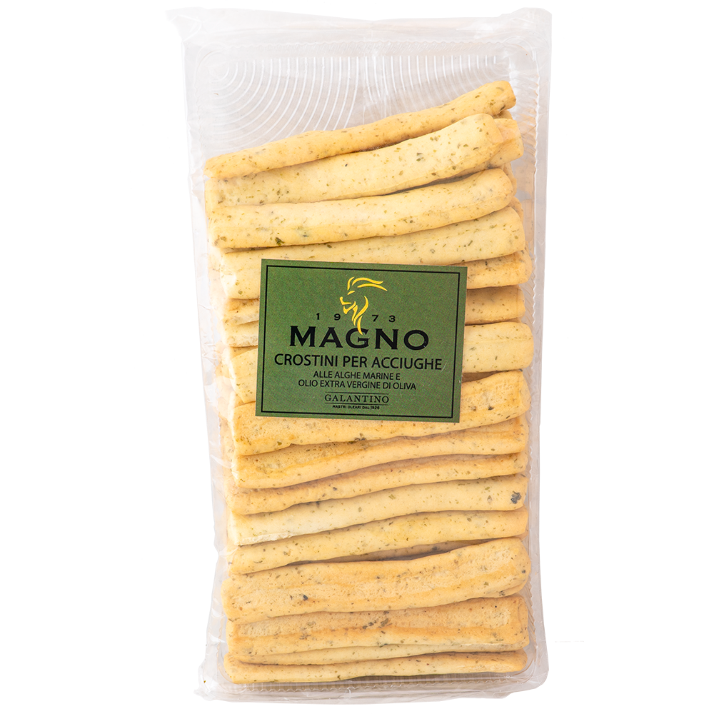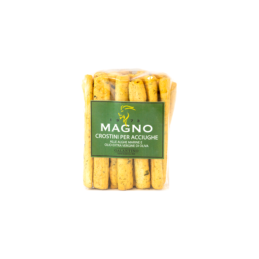 Pensati appositamente per le nostre acciughe del Cantabrico, in tre differenti fragranze (Olio evo, burro 'Brazzale' ed alghe marine) e con un basso dosaggio di sale, i crostini Magno sono ottimi anche come semplice snack, per aperitivo o utilizzati in altre pietanze.
